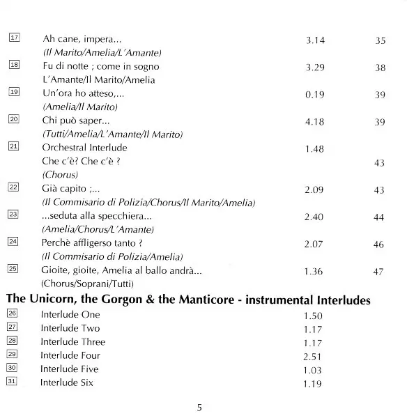 | Tytuł | Amelia Al Ballo. Instrumental Interludes From The Unicorn, The Gorgon And The Manticore. |
