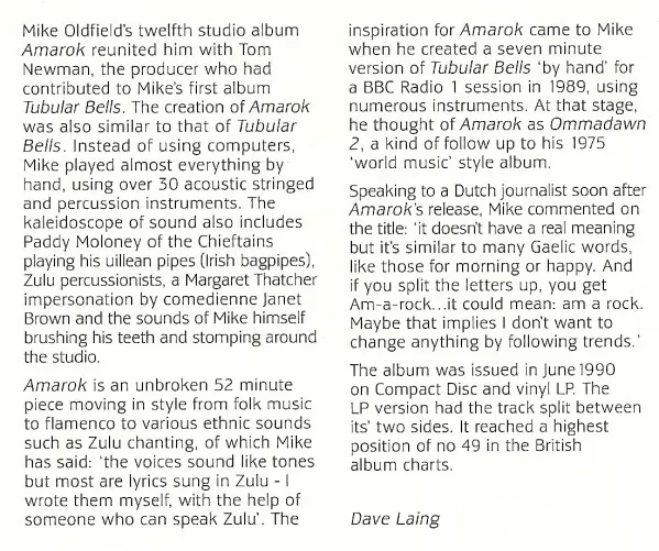 Amarok to trzynasty album Mike'a Oldfielda, wydany w 1990 roku. Fani uważają go za jego najbardziej charakterystyczne dzieło: pojedynczy sześćdziesięciominutowy utwór z ciągłą, ale ciągle zmieniającą się muzyką.