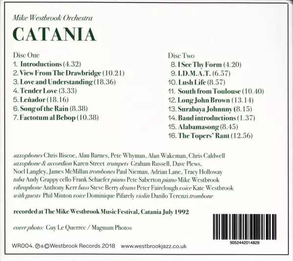 Mike Westbrook Orchestra: Catania Wersja na 2CD w standardowe wydanie. Ta konkretna edycja została wydana w WIELKA BRYTANIA w wydawnictwie Westbrook Records (2) dnia 8. lutego 2019. Album sięga do gatunku Jazz i Contemporary Jazz.