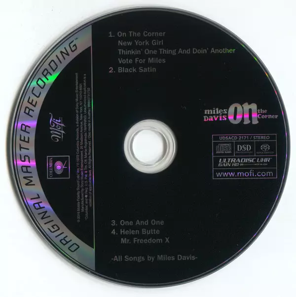 Miles Davis: On The Corner LTD | NUM Wersja na SACD w ograniczone indywidualnie numerowane wydanie. Ta konkretna edycja została wydana w USA w wydawnictwie Columbia we współpracy z Mobile Fidelity Sound Lab i Sony Music Commercial Music Group dnia 29. września 2021.