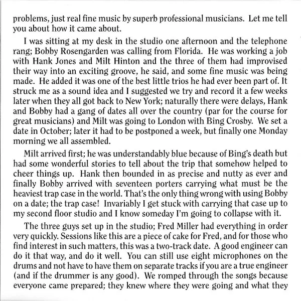 | Wykonawca | Hank Jones | Milt Hinton | Bobby Rosengarden |