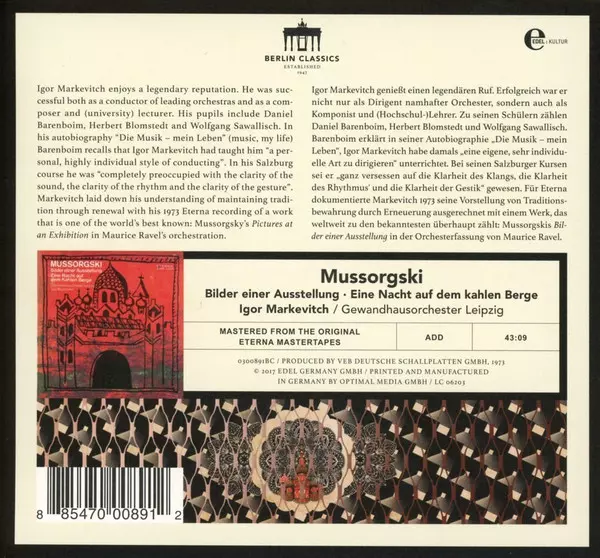 | Tytuł | Bilder Einer Ausstellung / Eine Nacht Auf Dem Kahlen Berge |