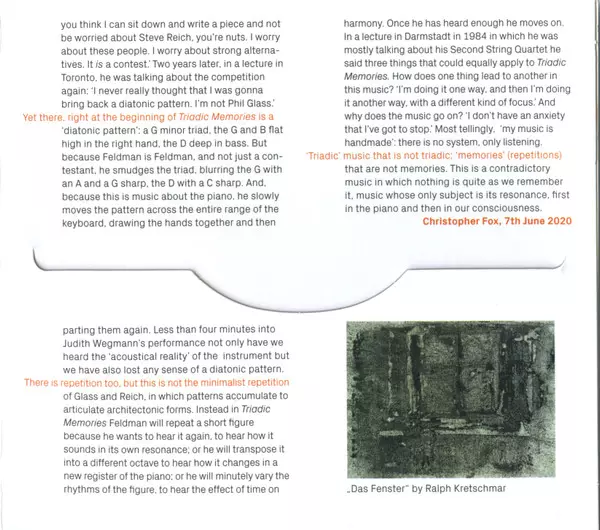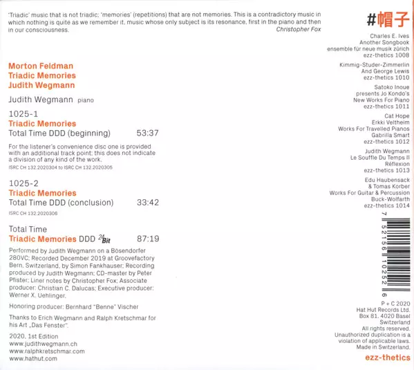 | Wykonawca | Morton Feldman | Judith Wegmann |