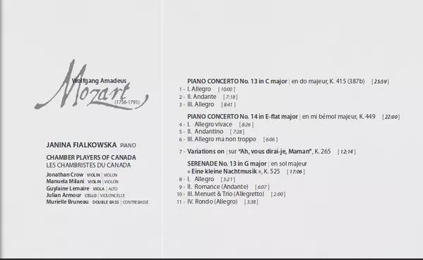| Wykonawca | Wolfgang Amadeus Mozart | Janina Fialkowska | The Chamber Players of Canada |