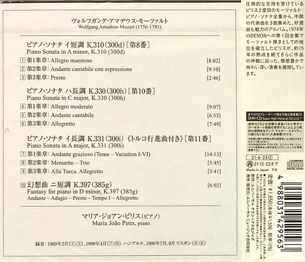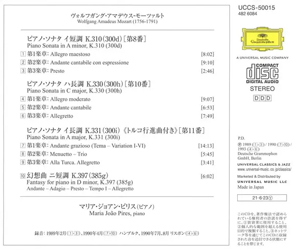 | Tytuł | Klaviersonaten K.310 / K.330 / K.331 "Alla Turca" / Fantasie K.397 |