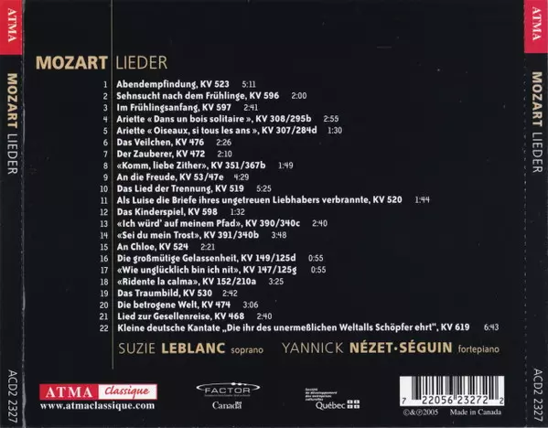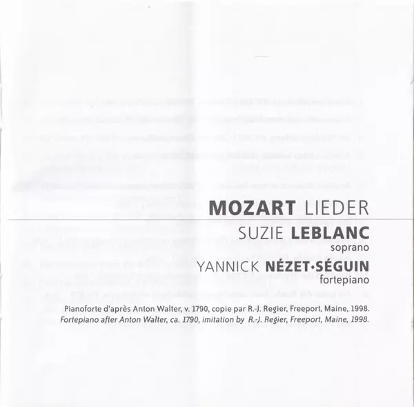 | Wykonawca | Wolfgang Amadeus Mozart | Yannick Nézet-Séguin | Suzie LeBlanc |