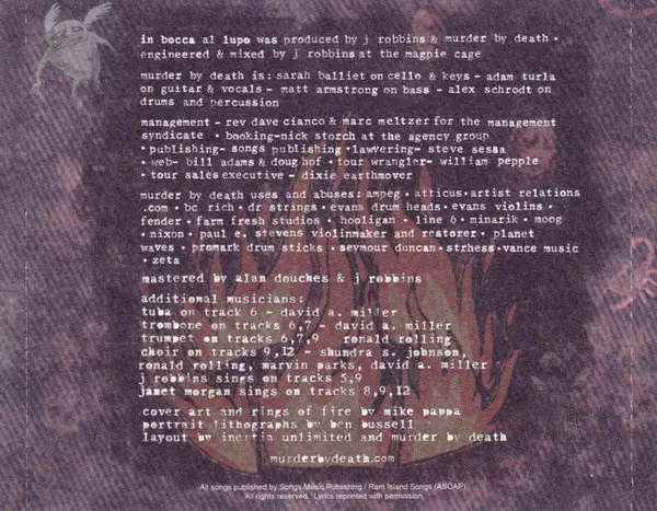 Murder By Death is an American indie rock band with a unique blend of alternative country, gothic Americana, and post-punk influences. Formed in Bloomington, Indiana, in 2000, the band was originally known as Little Joe Gould before changing their name to Murder By Death. The group...