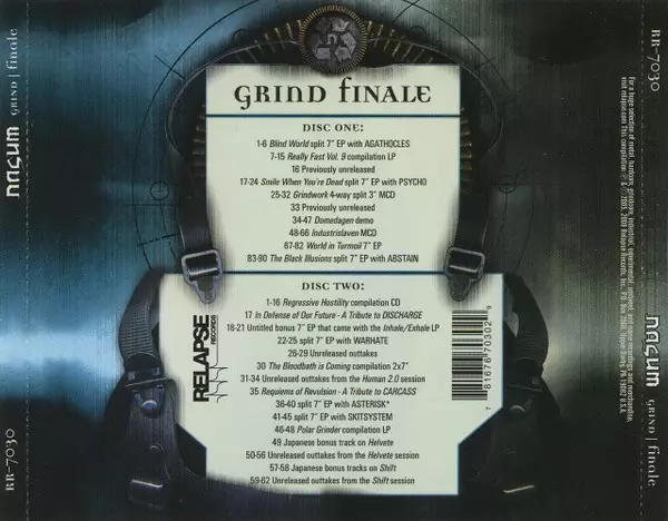Nasum: Grind Finale LTD Wersja na 2CD w ograniczone wydanie. Ta konkretna edycja została wydana w USA w wydawnictwie Relapse Records dnia 11. listopada 2008. Album sięga do gatunku Rock i Grindcore.