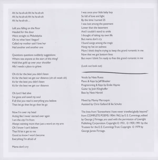 Backing Vocals Jeff Bhasker | Engineer [Additional Guitar Engineering] Tom Schick | Guitar Jeff Tweedy | Mixed By Andrew Sarlo | Programmed By, Keyboards Emile Haynie | Written-By Emile Haynie, Jeff Bhasker, Nate Ruess