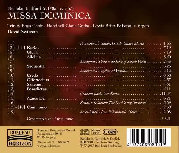 | Wykonawca | Nicholas Ludford | Trinity Boys' Choir | Lewis Brito-Babapulle | David Swinson |