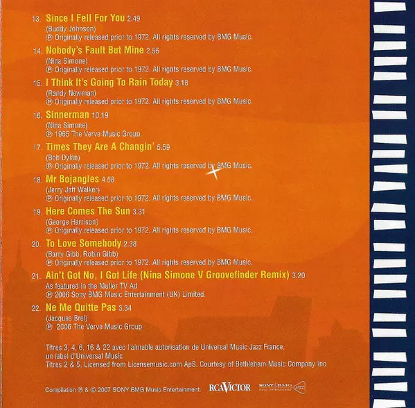 Nina Simone: The Very Best Of Wersja na CD w standardowe wydanie. Ta konkretna edycja została wydana w Francja w wydawnictwie Sony BMG Music Entertainment Jazz we współpracy z RCA Victor dnia 1. maja 2007. Album sięga do gatunku Jazz, Funk / Soul i Soul.