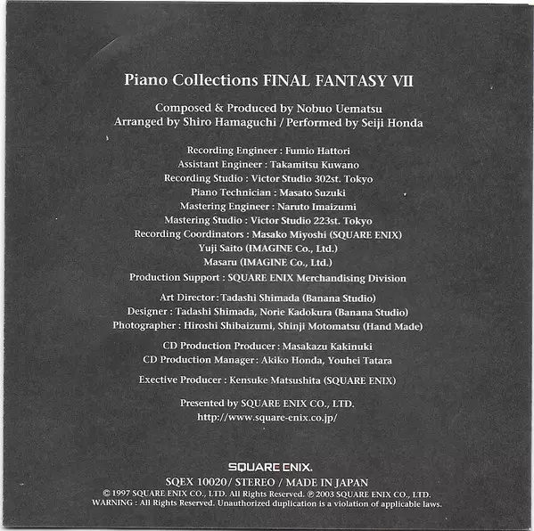 Tytuł | Final Fantasy VII: Piano Collections = ピアノ・コレクションズ・ファイナルファンタジーⅦ |