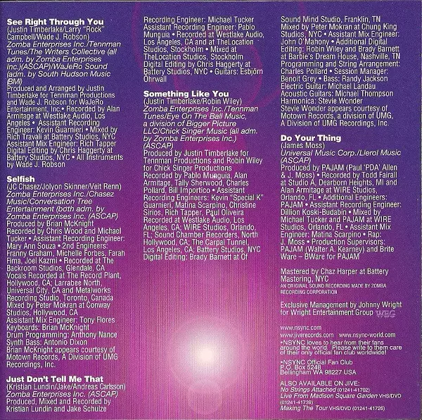 Engineer [Assistant Recording Engineer] Matina Scarpino | Mixed By Alex Greggs, Brad Daymond, Mike Tucker | Producer JC Chasez, Riprock 'n' Alex G | Recorded By Michael Tucker | Written-By Alex Greggs, Brad Daymond, JC Chasez, Justin Timberlake