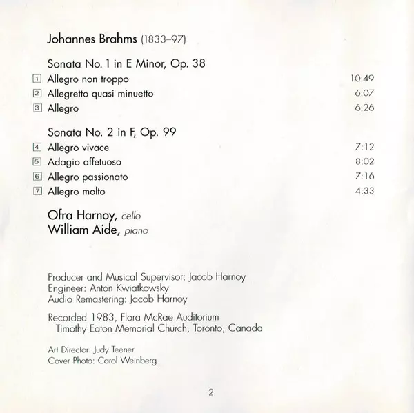 Wykonawca | Johannes Brahms | Ofra Harnoy |
