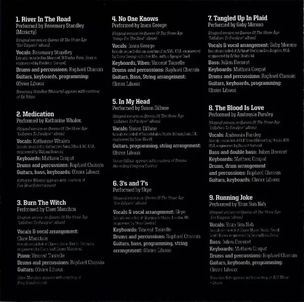 Drums, Percussion Raphael Chassin | Engineer [Vocals] Frédéric Carayol | Guitar, Keyboards, Programmed By Olivier Libaux | Lyrics By, Music By Joey Castillo, Josh Homme, Troy Van Leeuwen | Performer Rosemary Standley | Vocals Rosemary Standley