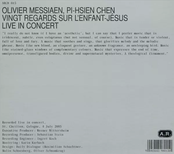 | Wykonawca | Olivier Messiaen | Chen Pi-Hsien |