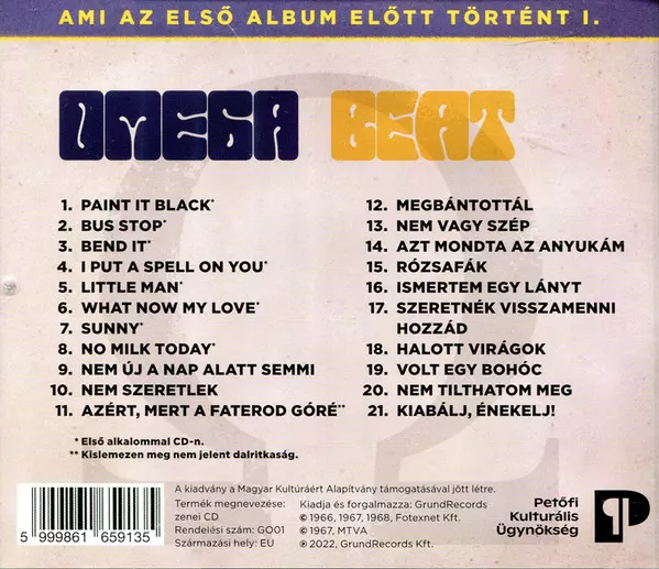Omega: Beat Wersja na CD w standardowe wydanie. Ta konkretna edycja została wydana w Węgry w wydawnictwie GrundRecords dnia 15. sierpnia 2022. Album można sklasyfikować jako gatunek Rock.