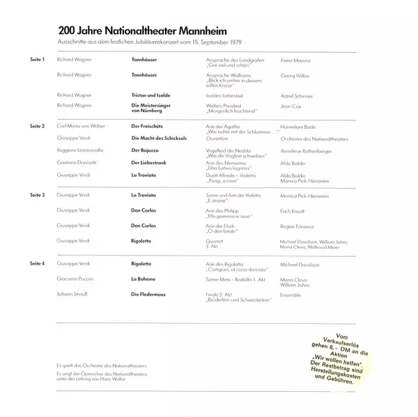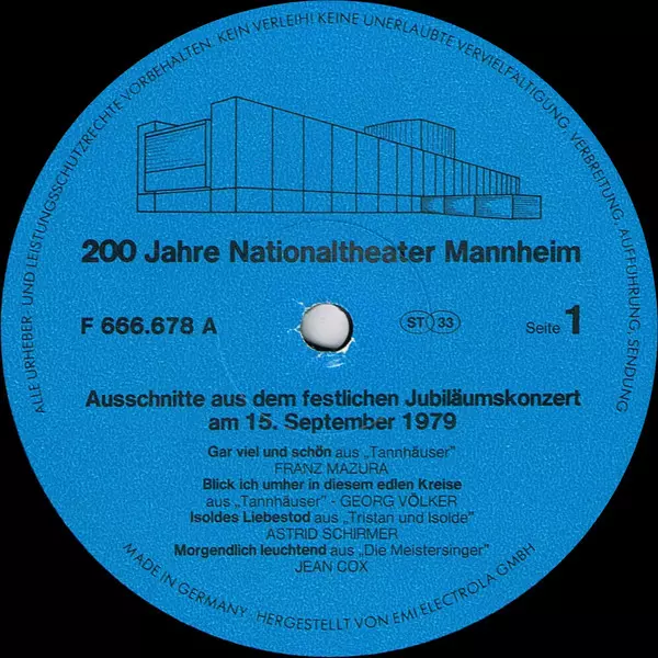 Tytuł | Galakonzert Der Mannheimer Oper (200 Jahre Nationaltheater Mannheim) (2xLP) |