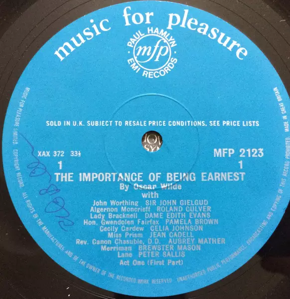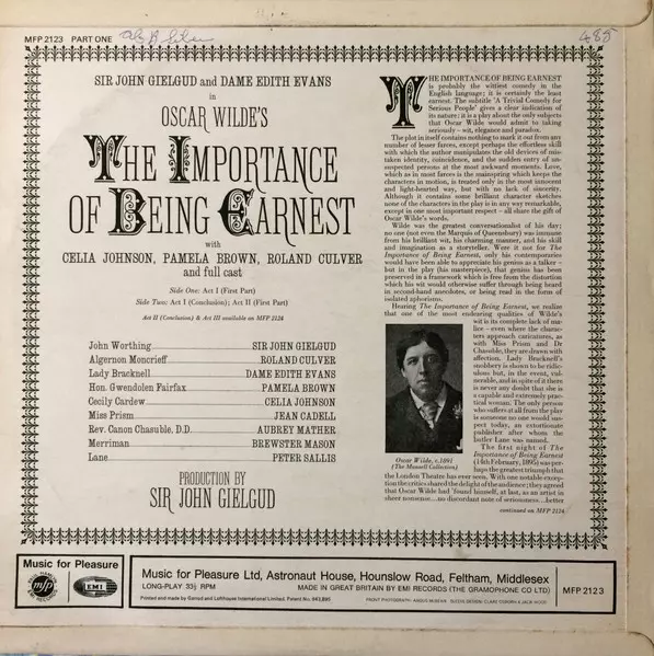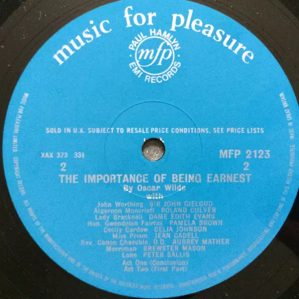 | Wykonawca | Oscar Wilde | John Gielgud | Edith Evans |
