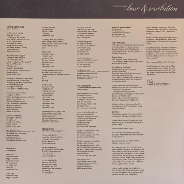 Over The Rhine: Love & Revelation Wersja na winylu LP w standardowe wydanie. Ta konkretna edycja została wydana w USA w wydawnictwie Great Speckled Dog dnia 3. maja 2019. Album sięga do gatunku Rock i Folk Rock. Gatefold Vinyl.