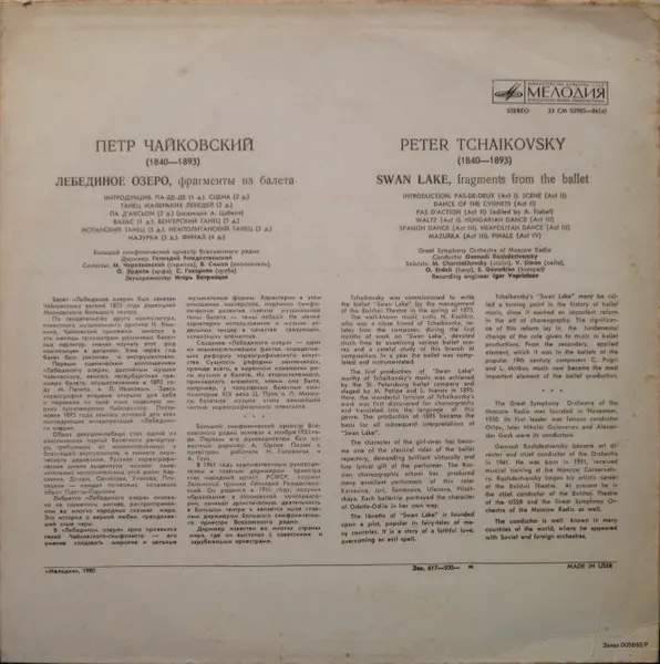 | Wykonawca | Pyotr Ilyich Tchaikovsky | Gennadi Rozhdestvensky | Большой Симфонический Оркестр Всесоюзного Радио |