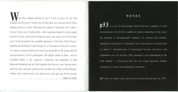 | Wykonawca | Chris Cutler | Lutz Glandien | Otomo Yoshihide | Zygmunt Krauze | p53 | Marie Goyette |