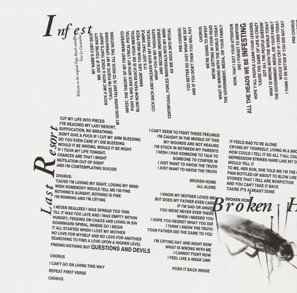 In 2000, the album Infest ( Papa Roach ) was released and was a great success. The album reached number six on the Billboard 200 chart and was certified platinum by the Recording Industry Association of America. The album's lead single, "Last Resort", reached number one on the Billboard Modern Rock Tracks chart and was nominated for a Grammy Awa...