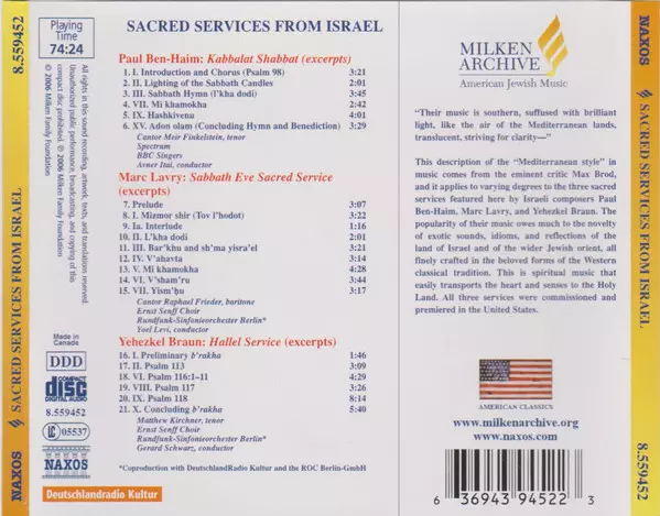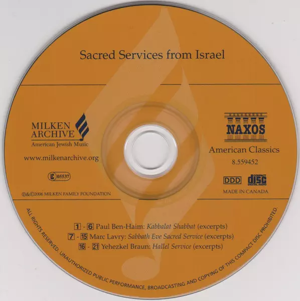 | 3 | Paul Ben-Haim: III. Sabbath Hymn (I'kha Dodi) | 3:45 min | |