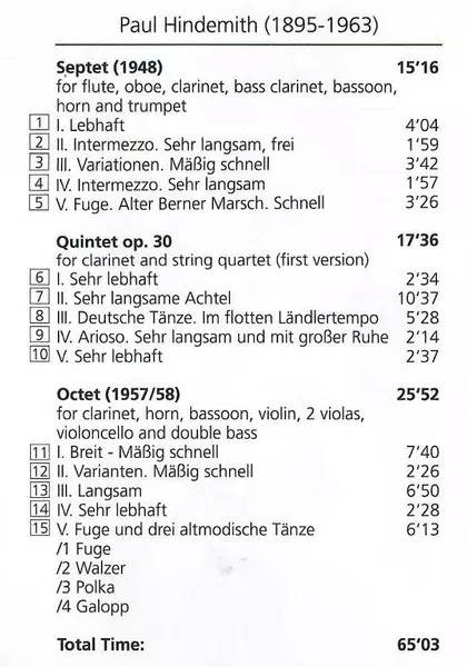 | Tytuł | Septet (1948) / Clarinet Quintet Op. 30 (First Version) / Octet (1957/58) |