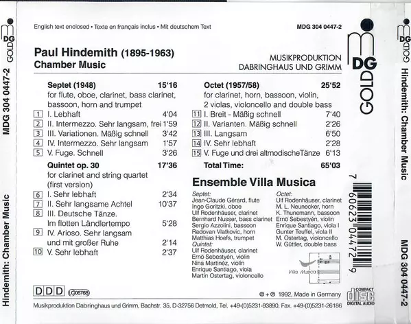 | Wykonawca | Paul Hindemith | Ensemble Villa Musica |
