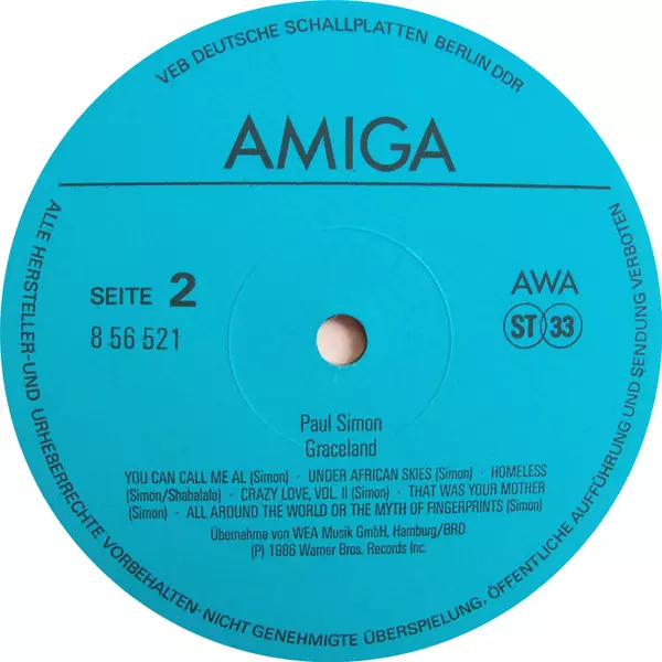 Paul Simon: Graceland Wersja na winylu LP w standardowe wydanie. Ta konkretna edycja została wydana w Republika Federalna Niemiec w wydawnictwie AMIGA roku 1990.