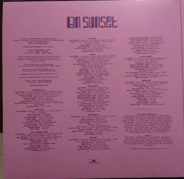Paul Weller: On Sunset CLR | LTD Wersja na winylu 2LP w kolorowane ograniczone wydanie. Ta konkretna edycja została wydana w Europa w wydawnictwie Polydor dnia 3. lipca 2020. Album można sklasyfikować jako gatunek Rock. Insert Gatefold High Quality Purple Coloured Vinyl Limited Edition.