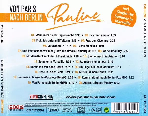 Pauline: Von Paris Nach Berlin Wersja na CD w standardowe wydanie. Ta konkretna edycja została wydana w Austria w wydawnictwie MCP Sound & Media we współpracy z Yoyosinfonia dnia 18. września 2020. Album sięga do gatunku Pop i Szlagiery.