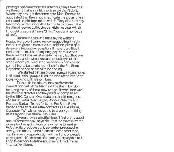 Pet Shop Boys: Fundamental / Further Listening 2005–2007 Wersja na 2CD w zremasterowane wydanie. Ta konkretna edycja została wydana w Europa w wydawnictwie Parlophone dnia 28. lipca 2017. Album sięga do gatunku Pop, Muzyka elektroniczna i Synth-Pop.