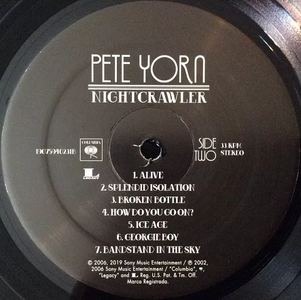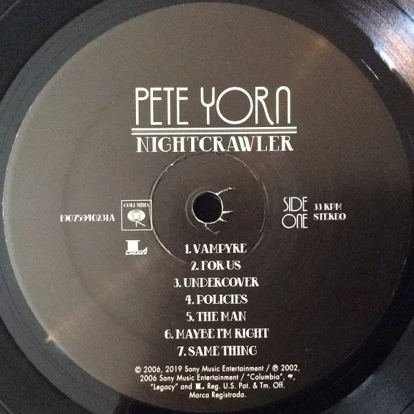 Pete Yorn: Nightcrawler Wersja na winylu LP w standardowe wydanie. Ta konkretna edycja została wydana w USA w wydawnictwie Columbia we współpracy z Legacy dnia 17. maja 2019. Album sięga do gatunku Rock, Pop i Alternative rock.