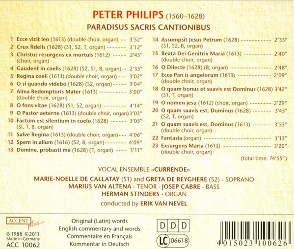 | Wykonawca | Greta de Reyghere | Currende | Josep Cabré | Erik Van Nevel | Peter Philips | Marius Van Altena | Marie-Noëlle de Callataÿ |