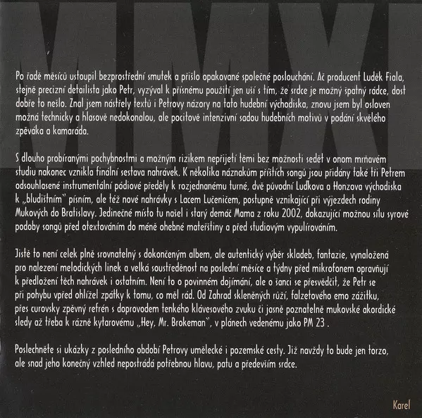 This album is a great mix of ballads and upbeat songs. Petr Muk She has a great voice and the lyrics are very touching. This album is a great mix of ballads and upbeat songs. Petr Muk She's got a great voice and the lyrics are very moving. This album is a great mix of ballads and upbeat songs. Petr Muk She's got a great voice and the lyrics are ...