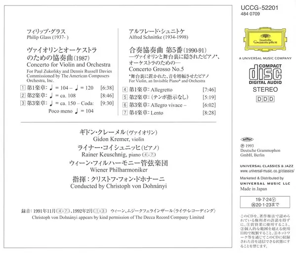 | Wykonawca | Wiener Philharmoniker | Philip Glass | Gidon Kremer | Alfred Schnittke | Christoph von Dohnányi |