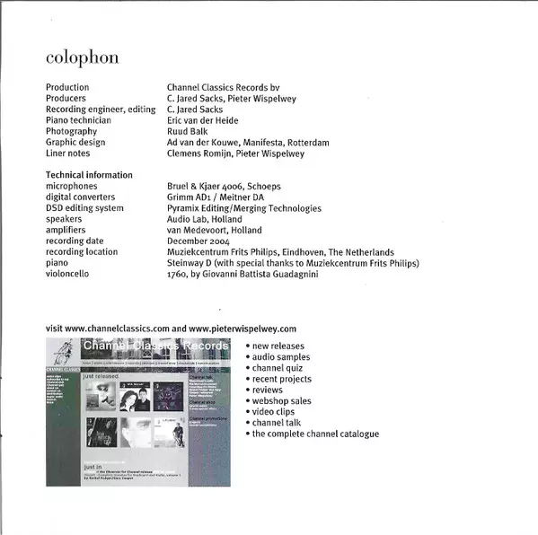 | Więcej informacji | SACD Jewelcase — Channel Classics Stereo |