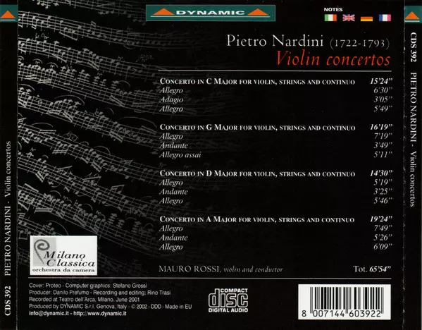 Wykonawca | Pietro Nardini | Orchestra Da Camera Milano Classica | Mauro Rossi |