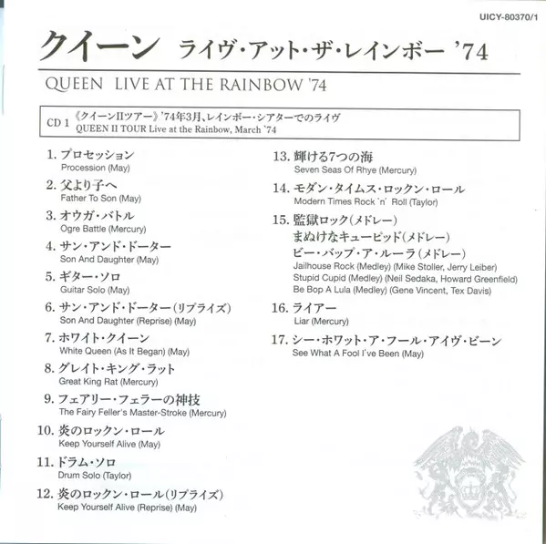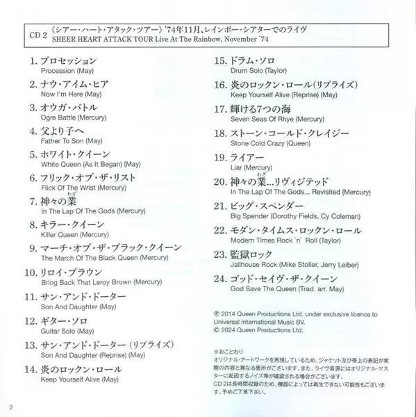 Queen: Live At The Rainbow '74 LTD Wersja na 2CD w ograniczone wydanie. Ta konkretna edycja została wydana w Japonia w wydawnictwie EMI dnia 8. marca 2024.