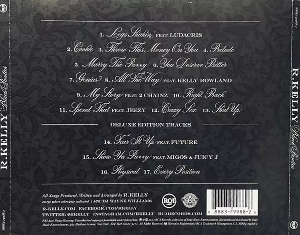 R. Kelly: Black Panties DLX Wersja na CD w deluxe wydanie. Ta konkretna edycja została wydana w USA w wydawnictwie RCA dnia 10. grudnia 2013. Album sięga do gatunku Funk / Soul i Contemporary R&B. Bonus Tracks Deluxe Edition.