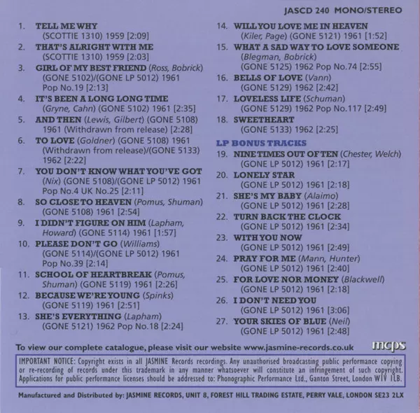 | Tytuł | Singles Collection 1959-1962 |