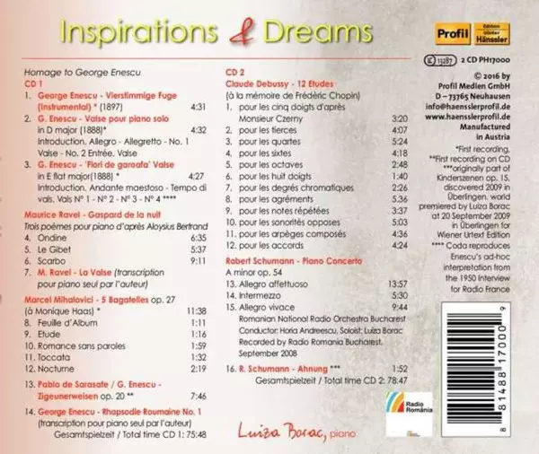 Wykonawca | Claude Debussy | Maurice Ravel | Robert Schumann | George Enescu | Luiza Borac | Marcel Mihalovici |