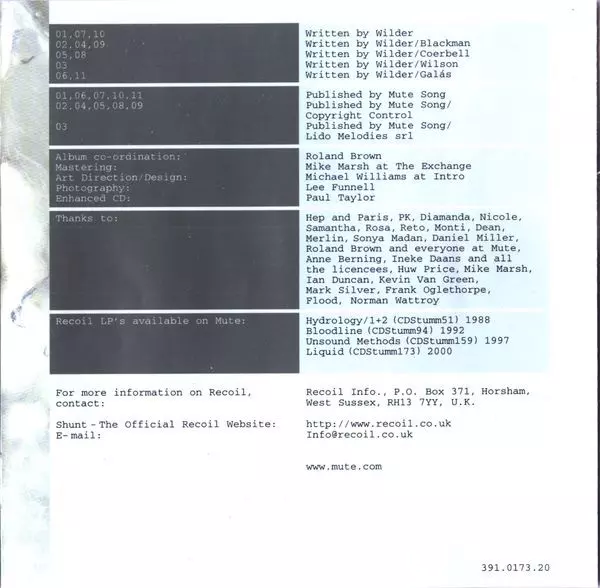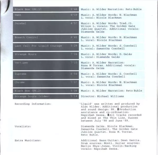 Liquid, původně vydané v roce 2000, je pátým albem skupiny Recoil, které napsal a produkoval Alan Wilder a další produkci a zvukový design vytvořil Paul Kendall. Na albu zpívají Diamanda Galás, Nicole Blackman, Samantha Coerbell, The Golden Gate Jubilee Quartet, Rosa M. Torras a Reto Buhle. Desetiskladbové album vychází na limitované edici dvoji...