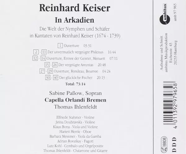 | Wykonawca | Reinhard Keiser | Capella Orlandi Bremen | Thomas Ihlenfeldt | Sabine Paßow |