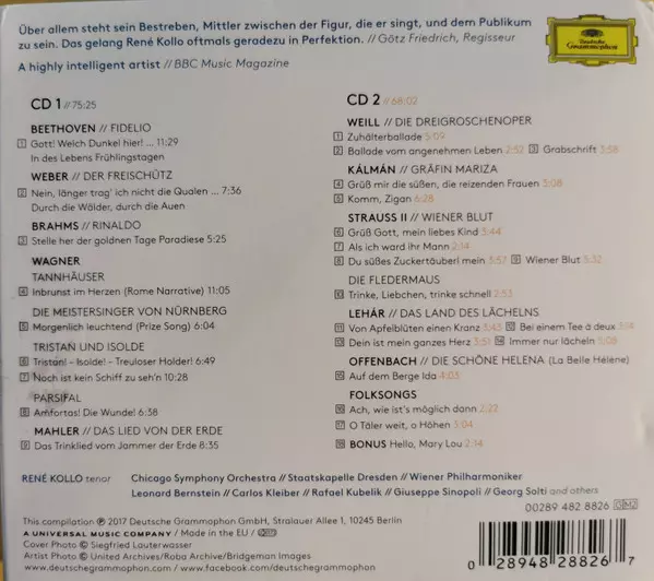 René Kollo: From Mary Lou To Meistersinger Wersja na 2CD w standardowe wydanie. Ta konkretna edycja została wydana w wydawnictwie Deutsche Grammophon dnia 17. listopada 2017. Album sięga do gatunku Muzyka klasyczna, Opera i Operetta.