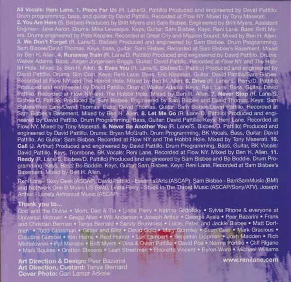 Drum Programming David Thomas (11) | Engineer Sam Bisbee | Keyboards, Bass, Guitar, Drum Programming Sam Bisbee | Lyrics By Reni Lane | Music By Sam Bisbee