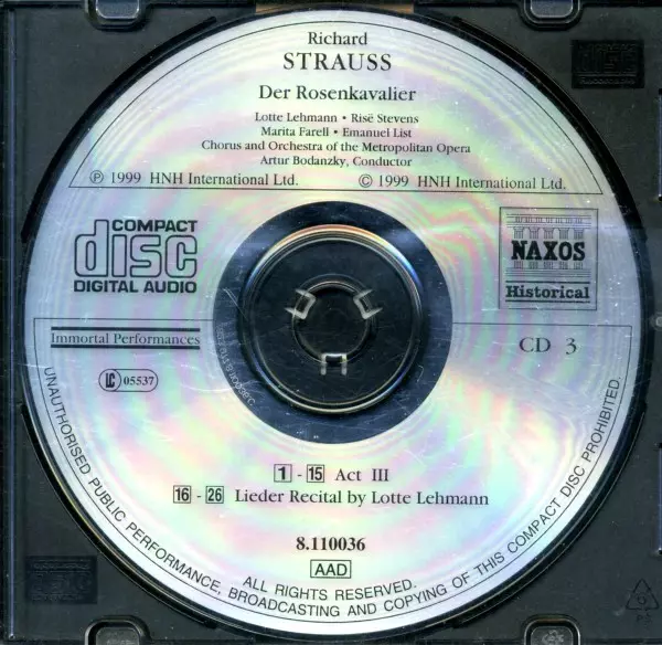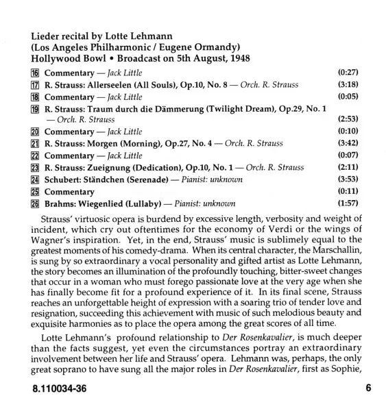 | Wykonawca | Richard Strauss | Metropolitan Opera Chorus | The Metropolitan Opera House Orchestra | Lotte Lehmann | Risë Stevens | Emanuel List | Artur Bodanzky | Marita Farell |