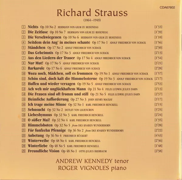 Wykonawca | Richard Strauss | Andrew Kennedy | Roger Vignoles |